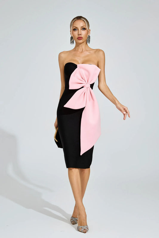 Bespaar 50%Gabriella - strapless midi-jurk met strikaccent